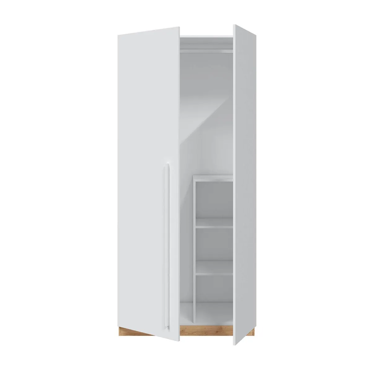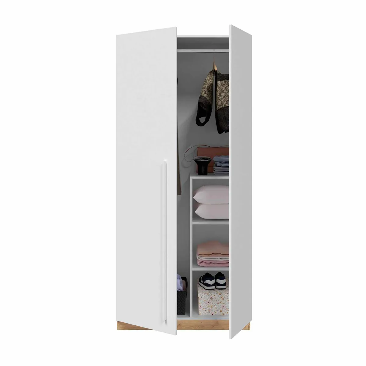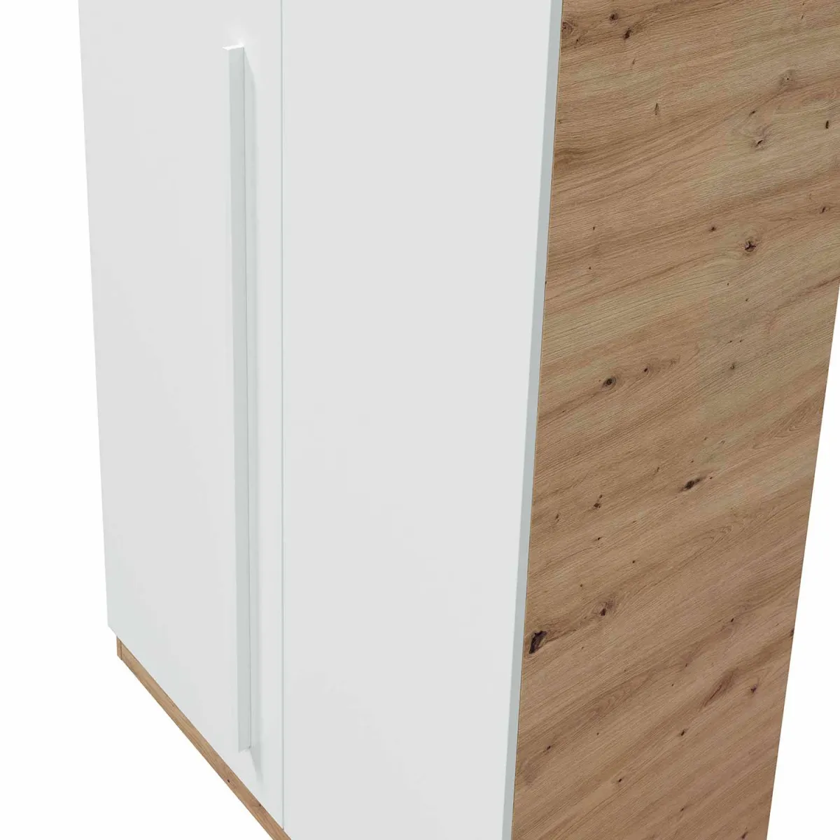 Mesita de noche Sweet 3 cajones con guías correderas metálicas y tiradores en forma de bola de color blanco, está fabricada en melamina de alta calidad en color Blanco Artik con patas ABS en color claro.