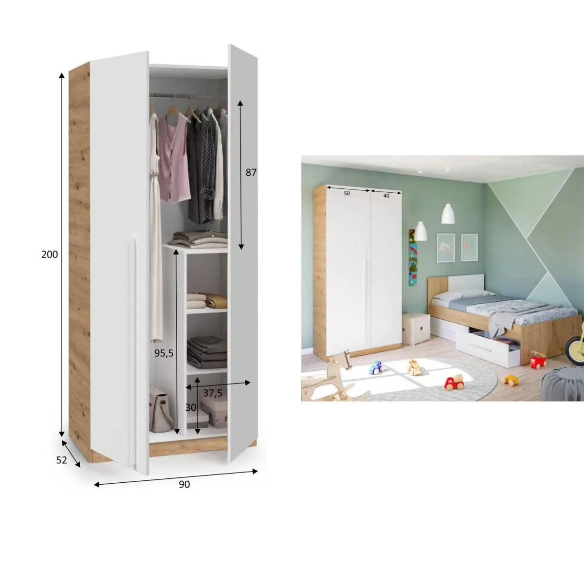 Recibidor Noon color Cemento y Blanco Artik con espejo de 50 cm. de alto y 95 cm. de ancho con cajon en el modulo inferior. Fabricado en melamina de alta calidad.
