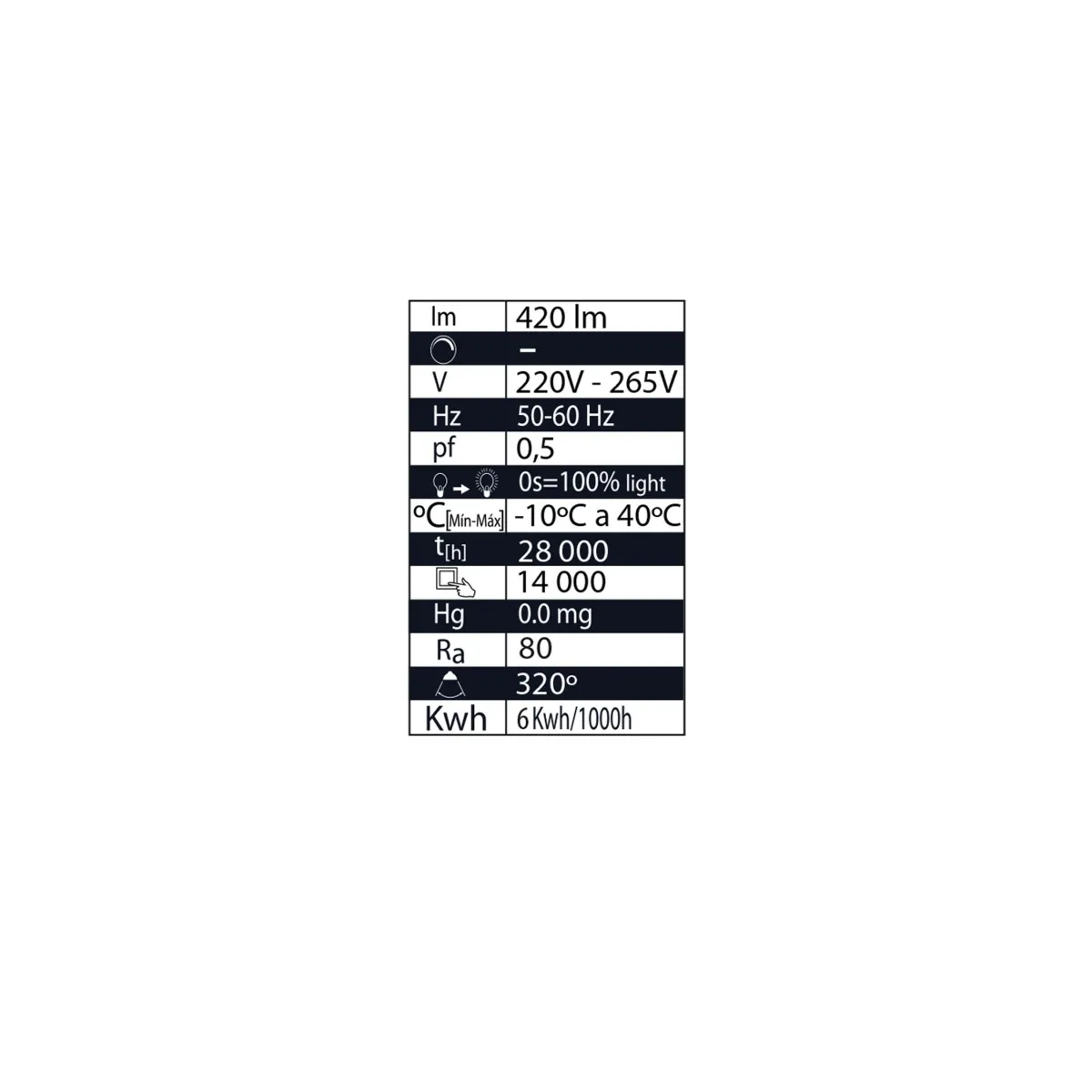 Bombilla decorativa LED. Casquillo E27, potencia 6W y 560 lúmenes. Una luz cálida de 2300K que le proporcionará una luz agradable a la estancia con una vida útil de 28.000 horas.