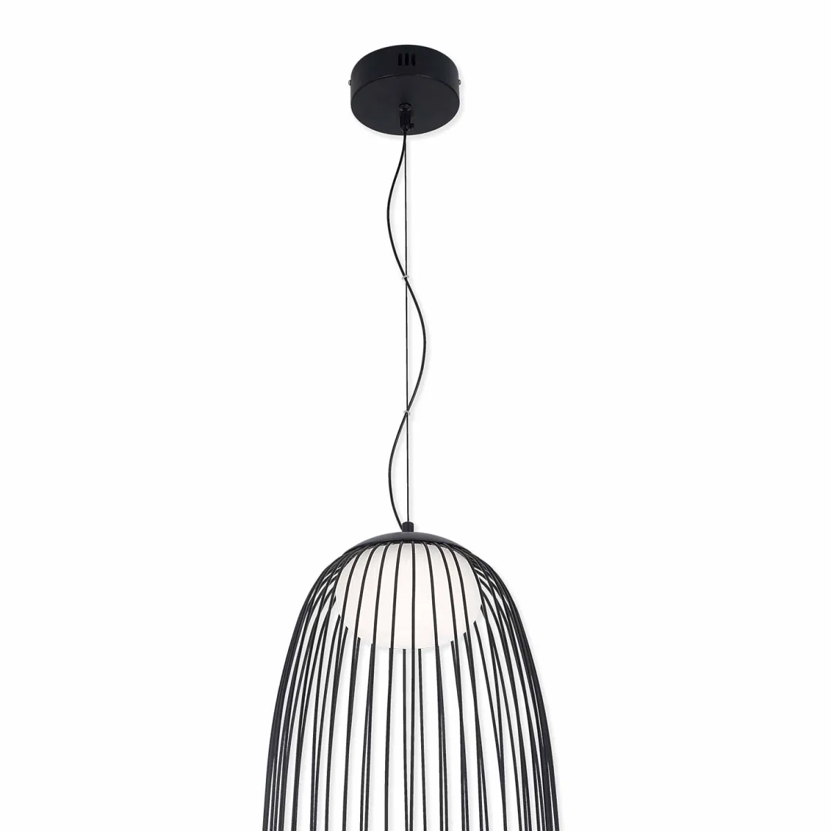 La Lámpara Colgante 1 Luz Negra Dubuo es una adición elegante y moderna para cualquier espacio del hogar. Fabricada con acrílico y acero pintado en negro, esta lámpara combina un diseño suave y cálido gracias a su forma redondeada.