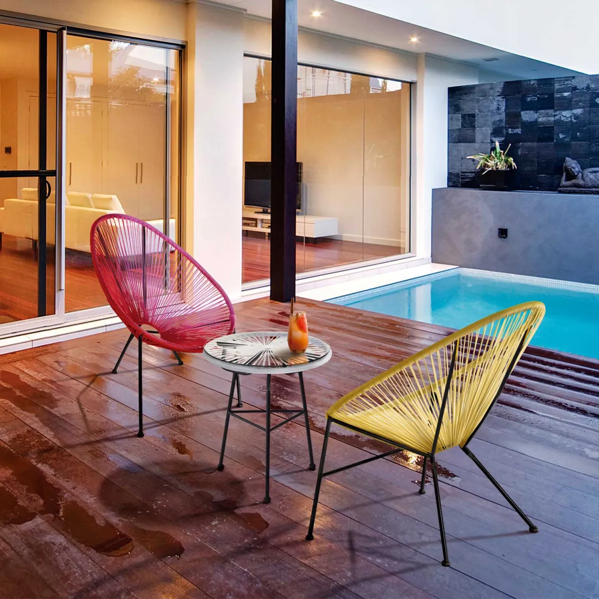 Añade un toque distintivo y elegante a tu espacio exterior con el pack de 2 sillas Acapulco amarillas. Inspiradas en el icónico diseño mexicano, estas sillas combinan sofisticación y comodidad para crear un ambiente acogedor en tu terraza o jardín.