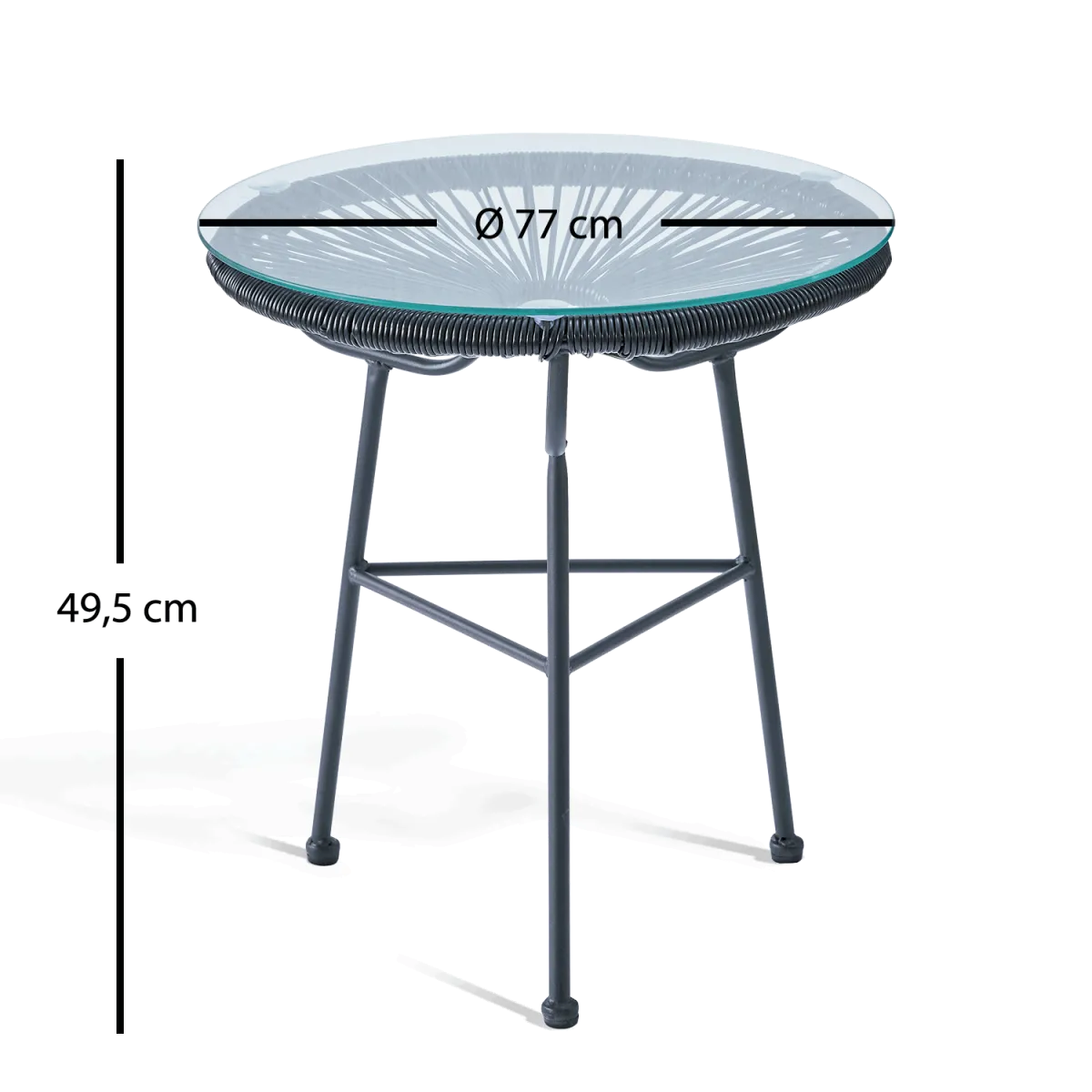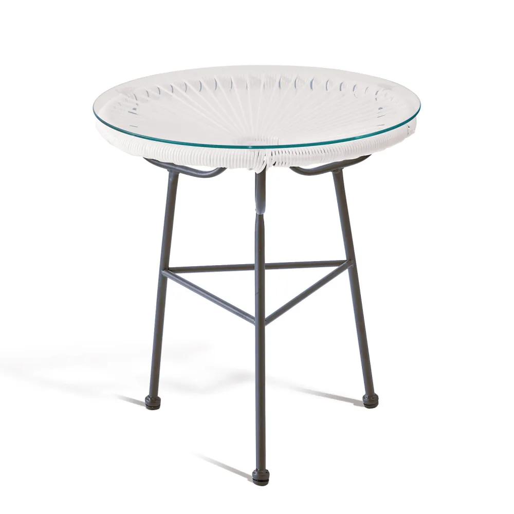 La Mesa Acapulco Negra de Ø 50 cm combina elegancia en un diseño contemporáneo perfecto para tu hogar o jardín. Destaca por su estructura metálica resistente y su superficie de vidrio transparente, ideal para complementar cualquier espacio interior o exterior. Su diseño moderno y minimalista aporta la funcionalidad que necesitas.