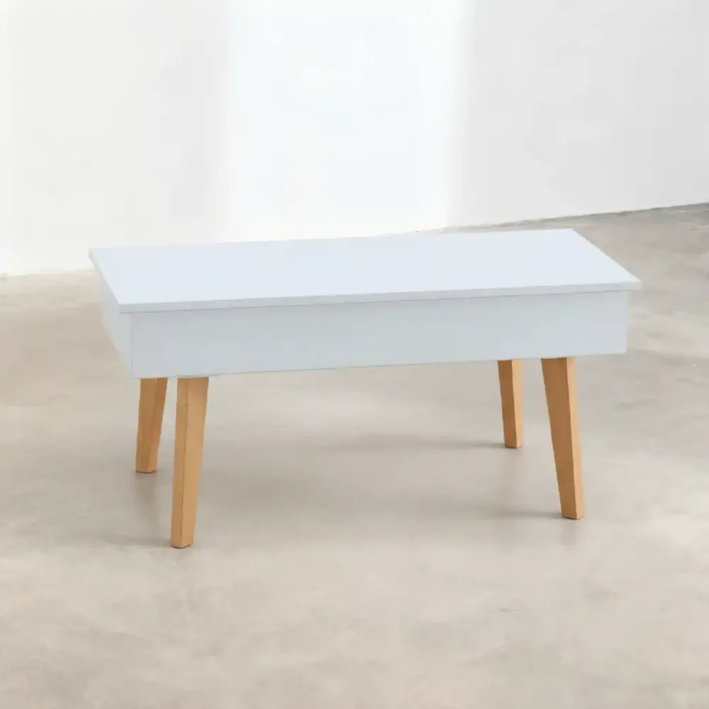 La Mesa Elevable de Centro Kalesi es un mueble moderno y elegante capaz de vestir casi cualquier estancia y que, además, nos ofrece un espacio extra bajo su tapa para guardar cualquier objeto que necesitemos tener a mano.