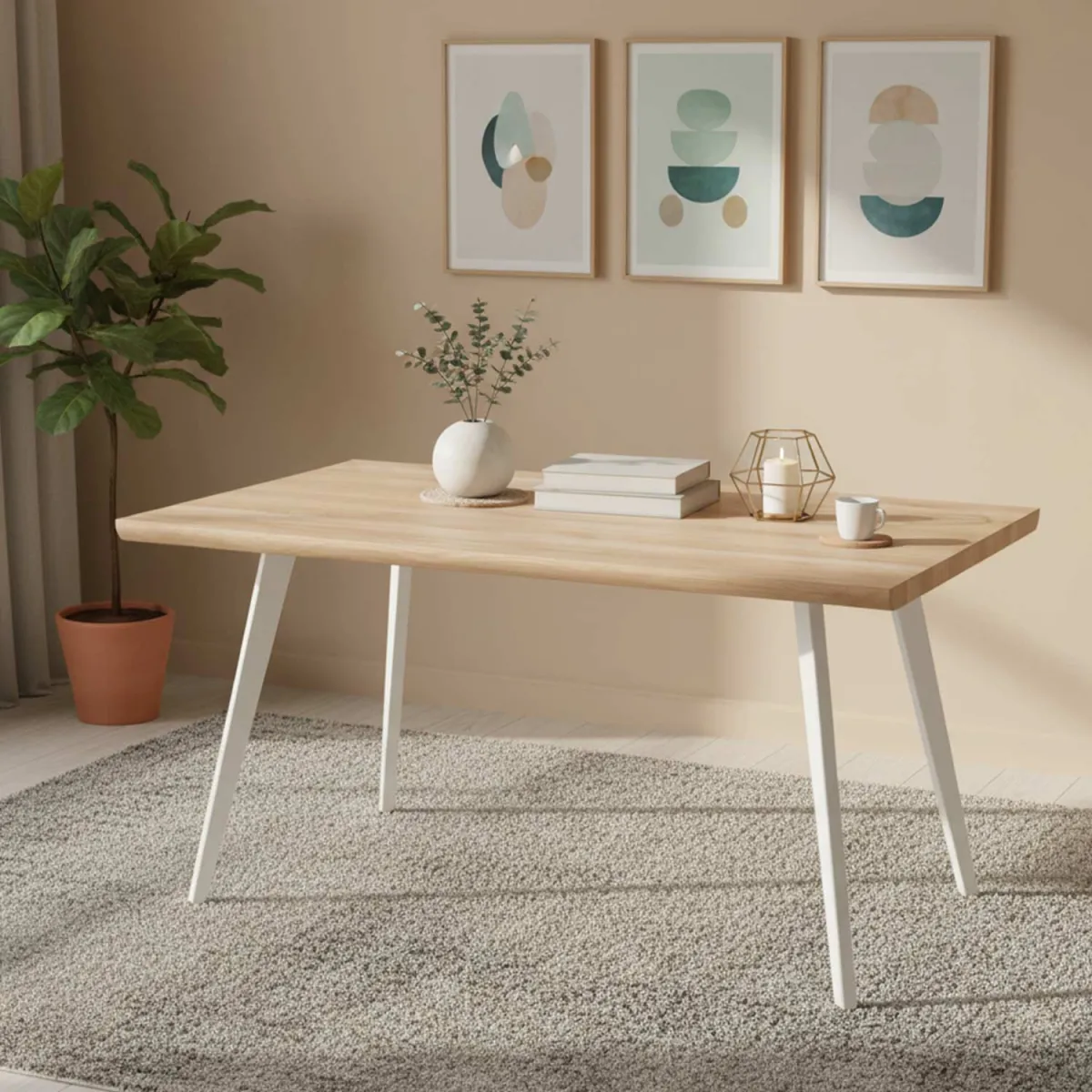 Materiales: tapa en MDF efecto madera natural; patas metálicas blanco...