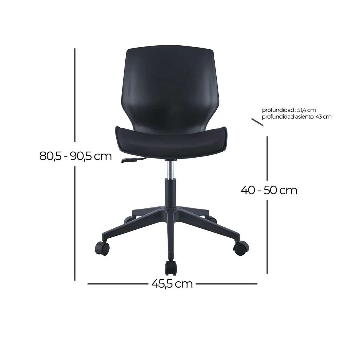 Potencia tu productividad con la silla de oficina con ruedas Basic, fabricada en nylon. Su diseño ergonómico y durabilidad hacen de esta silla una elección perfecta para un entorno de trabajo cómodo y funcional.