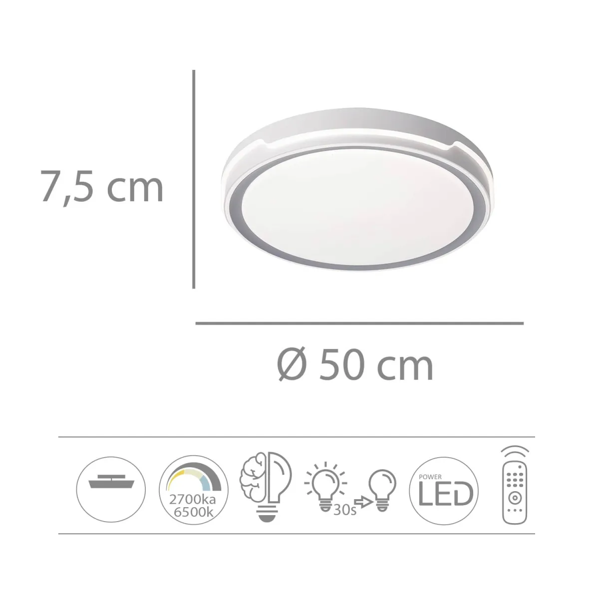 Plafonnier LED Regulable 53W Ø50Cm color Blanco y Dorado Bakar. plafonnier LED au design moderne et efficace. Elle présente une finition couleur blanc. Idéale pour salons, chambres, entrées ou couloirs.