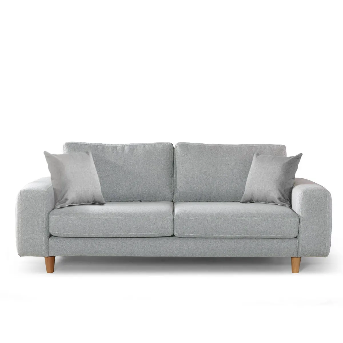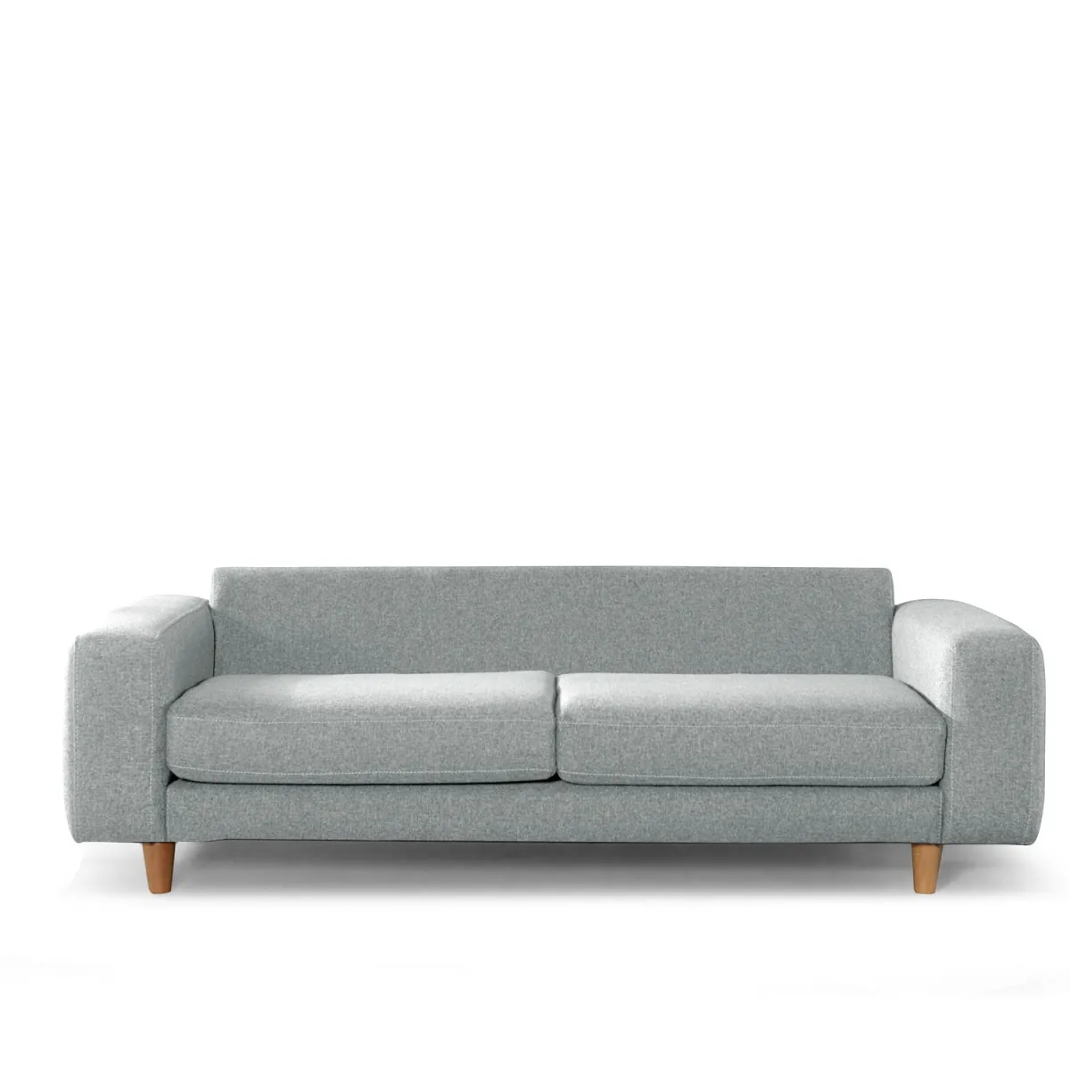 Canapé‑lit Cloud avec ouverture clic‑clac, tapissé d’un tissu doux avec rembourrage confortable, surpiqûres décoratives et pieds en bois de hêtre.