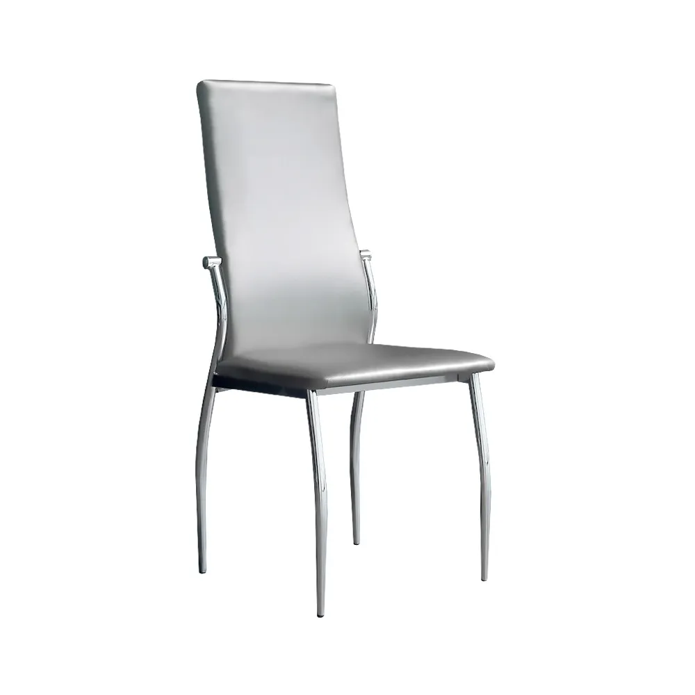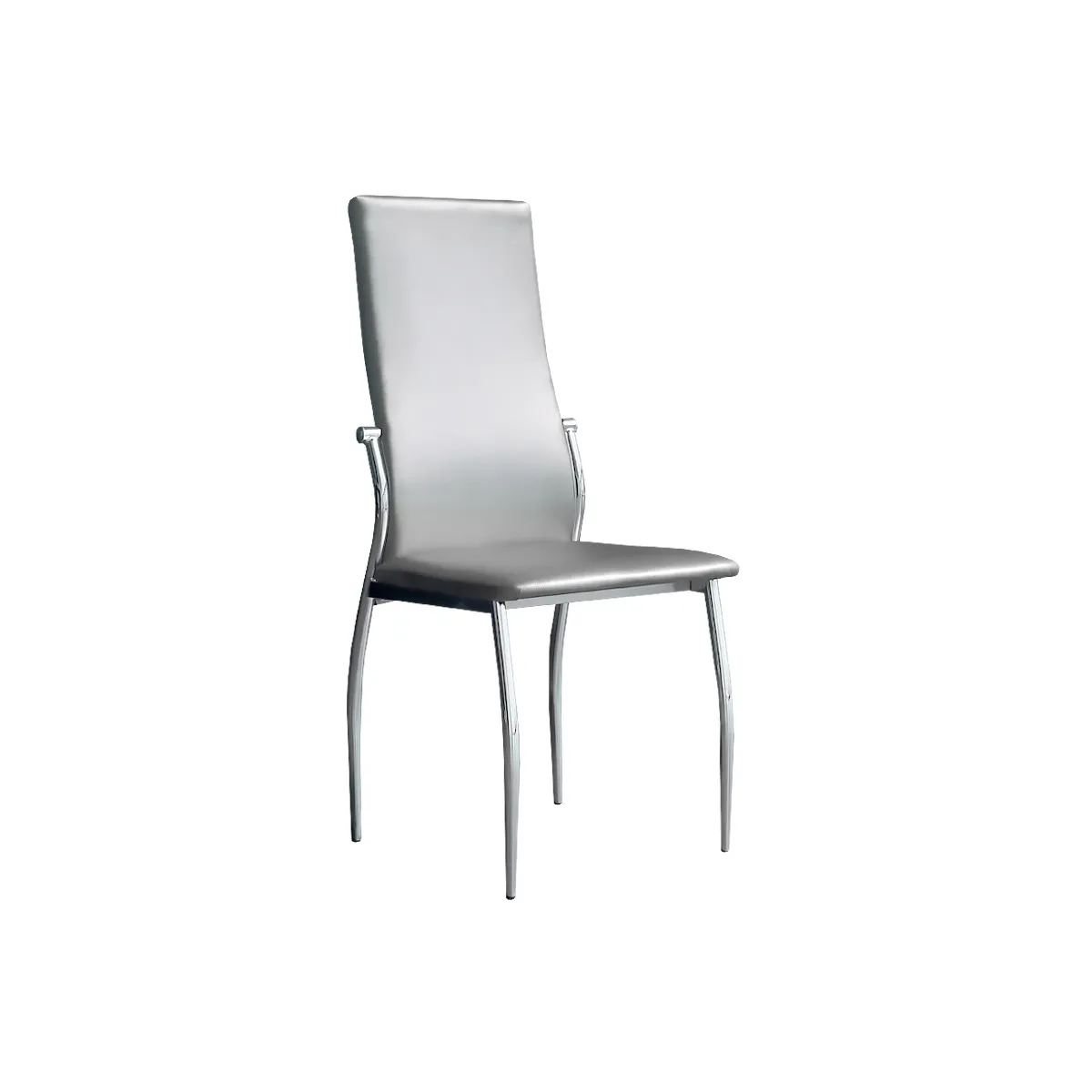 Chaise tapissée fabriquée en cuir synthétique, réalisé en PU, un polyuréthane de haute résistance avec une texture douce et souple, et donc idéal pour une utilisation prolongée, qui réussit à atteindre un toucher et une apparence similaires au cuir naturel, avec un coût vraiment inférieur. Pieds en acier chromé.