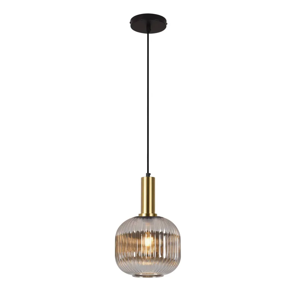 La lampada a sospensione a 1 luce Kyle Fumé unisce design moderno ed eleganza, con una struttura in acciaio verniciato oro e un paralume fumé che dona calore a qualsiasi ambiente.