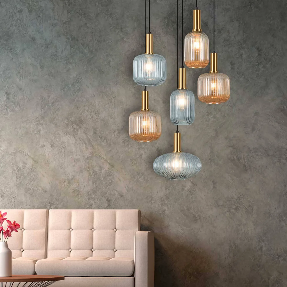 La lampada a sospensione Glory Mix a 5 luci è la scelta perfetta per illuminare e abbellire gli spazi moderni con un design unico e sofisticato. La sua struttura in acciaio verniciato oro e i paralumi in vetro nei toni fumé e ambra creano un ambiente caldo ed elegante. Con cinque punti luce, offre un'illuminazione efficiente e uno stile contemporaneo,...