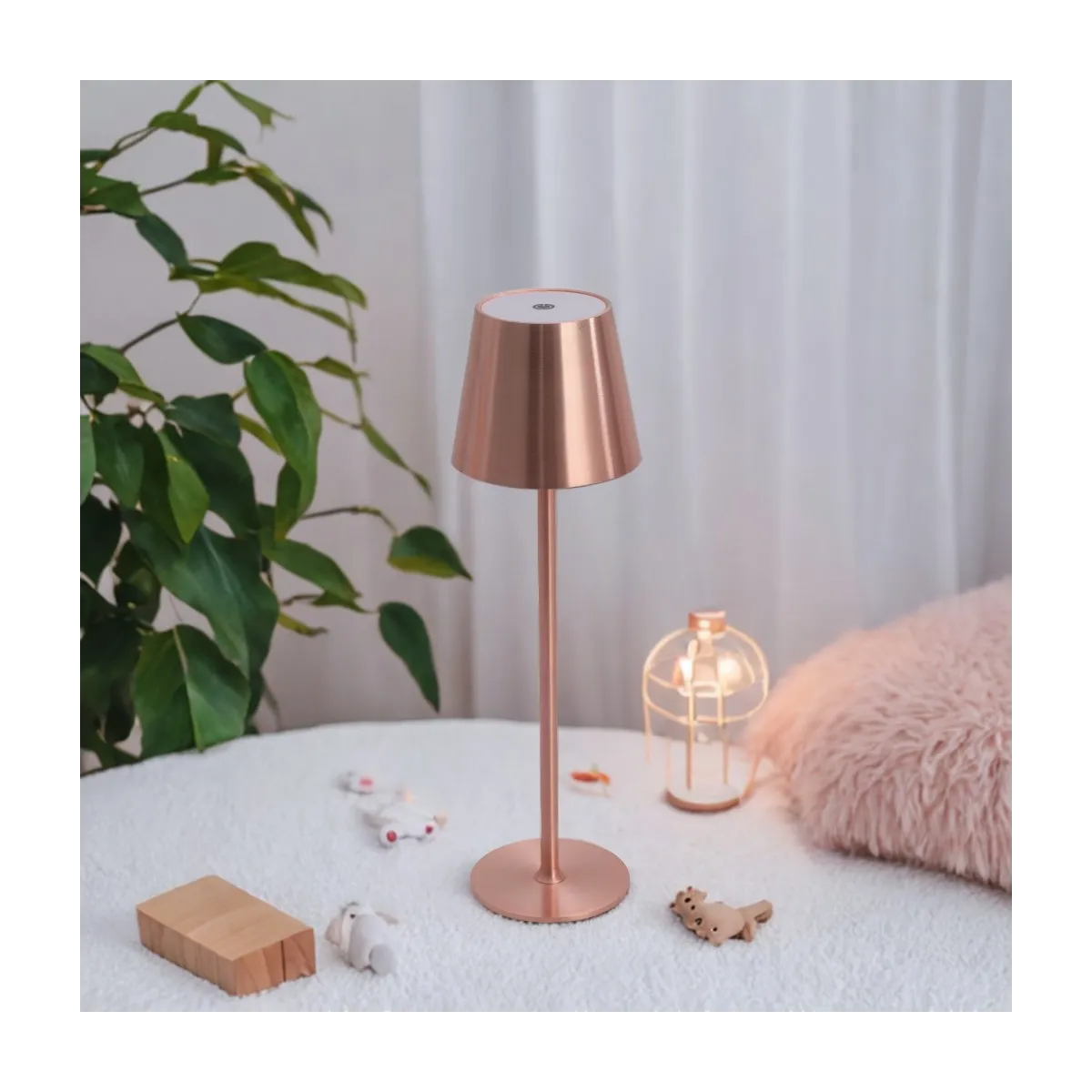 La lampada da tavolo LED portatile e ricaricabile Emei dorata unisce eleganza, praticità e innovazione: la scelta ideale per illuminare e arredare qualsiasi ambiente con stile.
