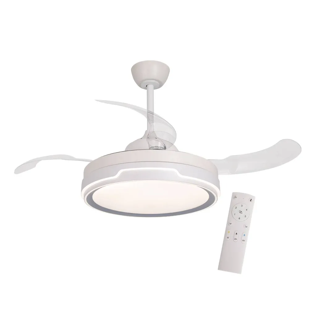 Il ventilatore LED a 4 pale pieghevoli Argus combina funzionalità e design moderno per migliorare qualsiasi ambiente. Questo ventilatore offre un potente flusso d'aria ed è altamente efficiente grazie alle sue 6 velocità regolabili e al sistema di illuminazione LED regolabile. Inoltre, include un telecomando e barre di diverse altezze per un'installazione...