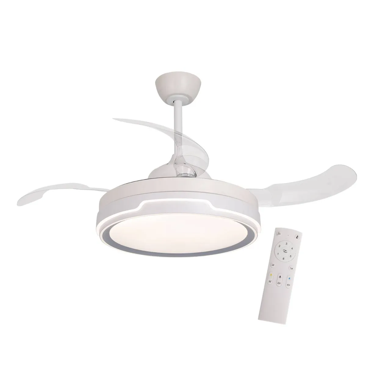 Il Ventilatore 4 Pale Pieghevoli LED 24W Tyrion è la soluzione perfetta per mantenere qualsiasi spazio fresco e ben illuminato, combinando efficienza energetica e design elegante. Ideale per chi cerca funzionalità e stile in un unico prodotto. Migliora il tuo comfort con questo ventilatore versatile e moderno.