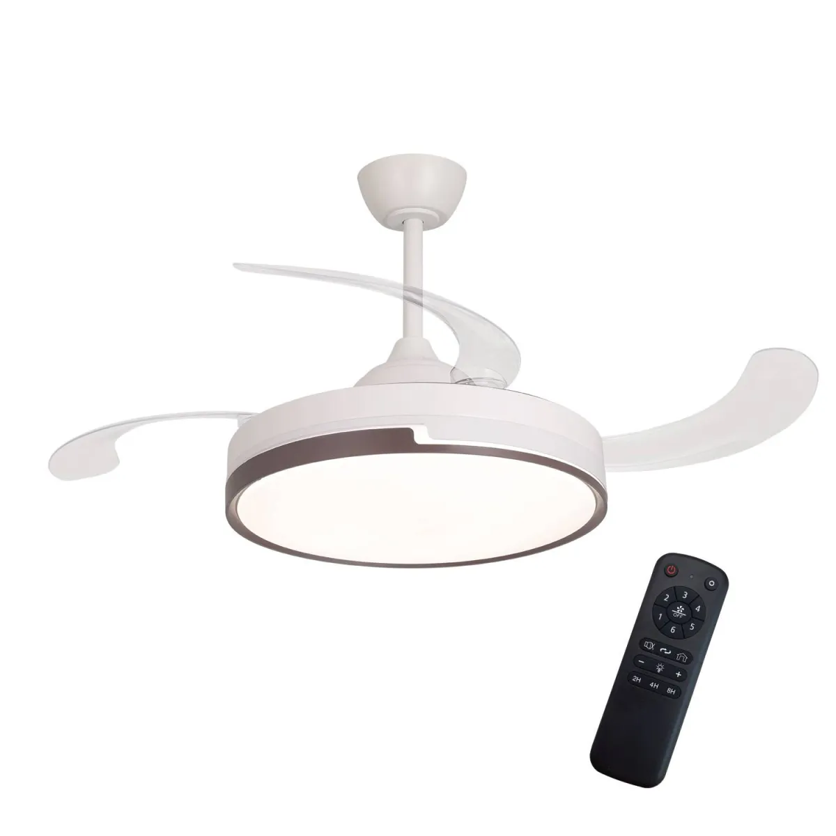 Il ventilatore LED a 4 pale pieghevoli Penny combina funzionalità e design moderno per migliorare qualsiasi ambiente. Questo ventilatore offre un potente flusso d'aria ed è altamente efficiente grazie alle sue 6 velocità regolabili e al sistema di illuminazione LED regolabile. Inoltre, include un telecomando e barre di diverse altezze per un'installazione...