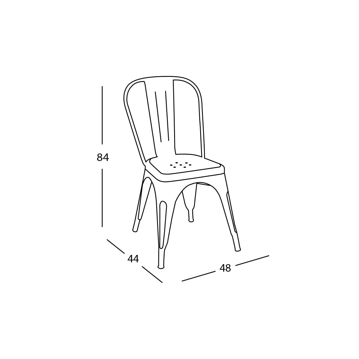 Misure: Altezza: 84 cm | Larghezza: 48 cm | Profonditá: 44 cm | Altezza alla seduta: 45 cm.