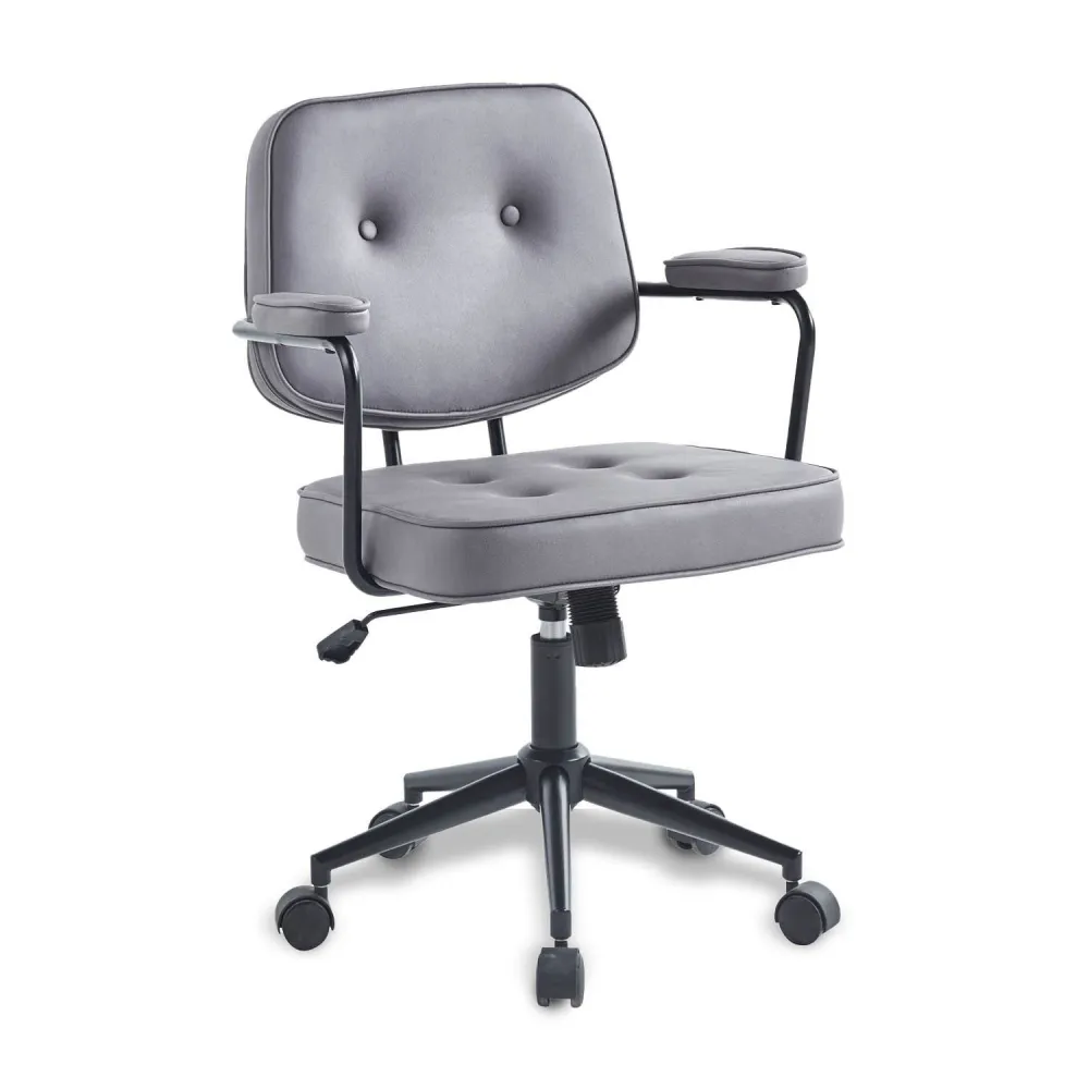 Lasedia da scrivania Studio con rotelle, di colore nero, ha un design ergonomico con rinforzo lombare. È una sedia molto compatta e confortevole. Ideale per gli ambienti di studio e di lavoro, sia negli uffici che per l'ufficio di casa o come sedia da studio.