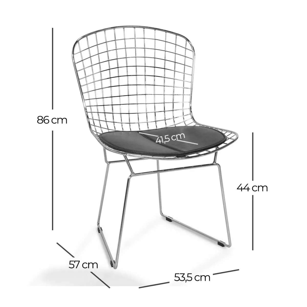 La sedia Evans Chrome è uno di quei prodotti in grado di coniugare un'estetica sorprendente e all'avanguardia con gli aspetti funzionali di base di una sedia. Le linee curve della seduta sono studiate per accogliere comodamente il corpo di chi è seduto. Sia lo schienale che il sedile sono costruiti con una griglia di acciaio cromato a quadretti e sono dotati di cuscino per un maggiore comfort. Ha gambe a slitta anch'esse in acciaio cromato con quattro parti in plastica per evitare il contatto diretto dell'acciaio con il suolo.