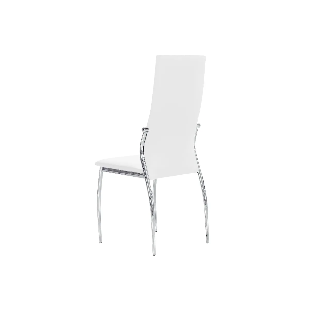 Sedia imbottita fabbricata in similpelle, in Pu, ovvero un poliuretano ad alta resistenza con una trama morbida e flessibile, che lo rende ideale per un uso prolungato nel tempo, ottenendo al tatto e alla vista un prodotto simile alla vera pelle ma ad un costo consistentemente più basso. Con gambe in acciaio cromato