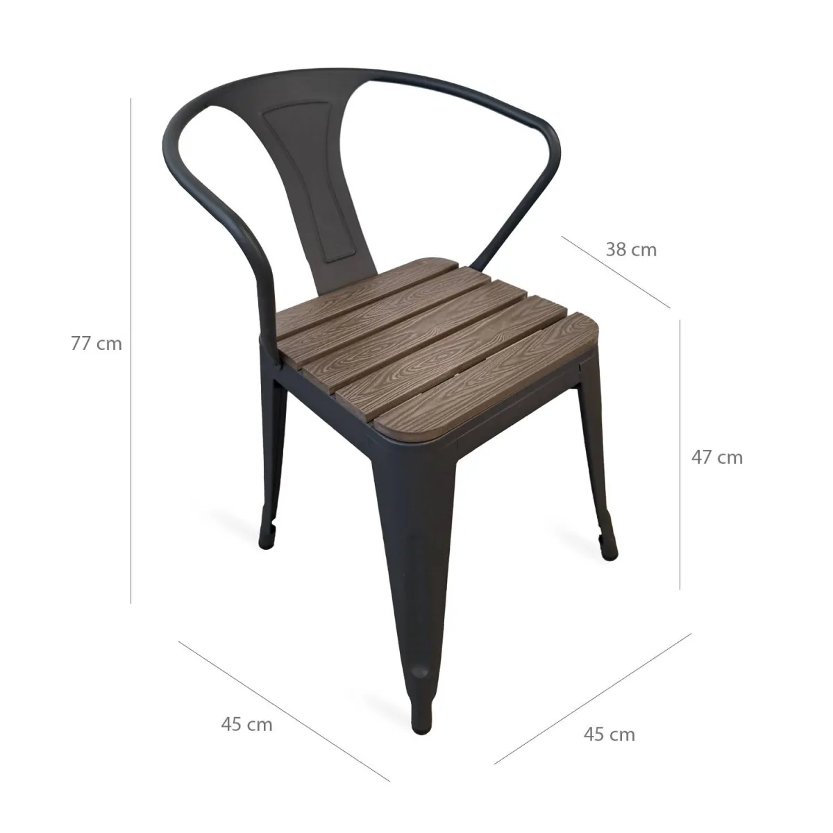 Materiali: PE e metallo con effetto legno.