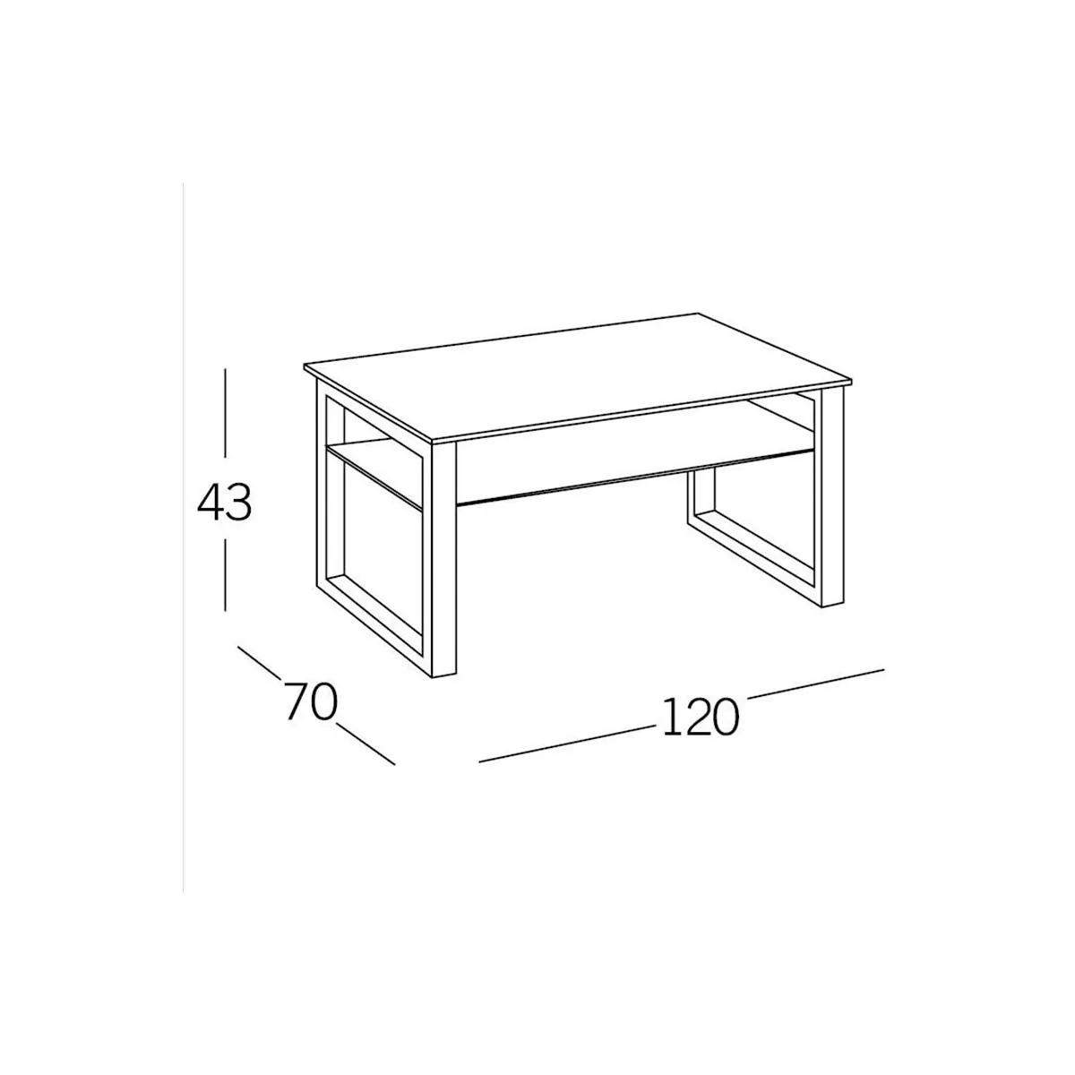 Medidas: Largura 70 cm x Profundidade 70 cm x Altura 50 cm. Espessura do tampo superior: 8 mm; espessura da prateleira inferior: 6 mm.