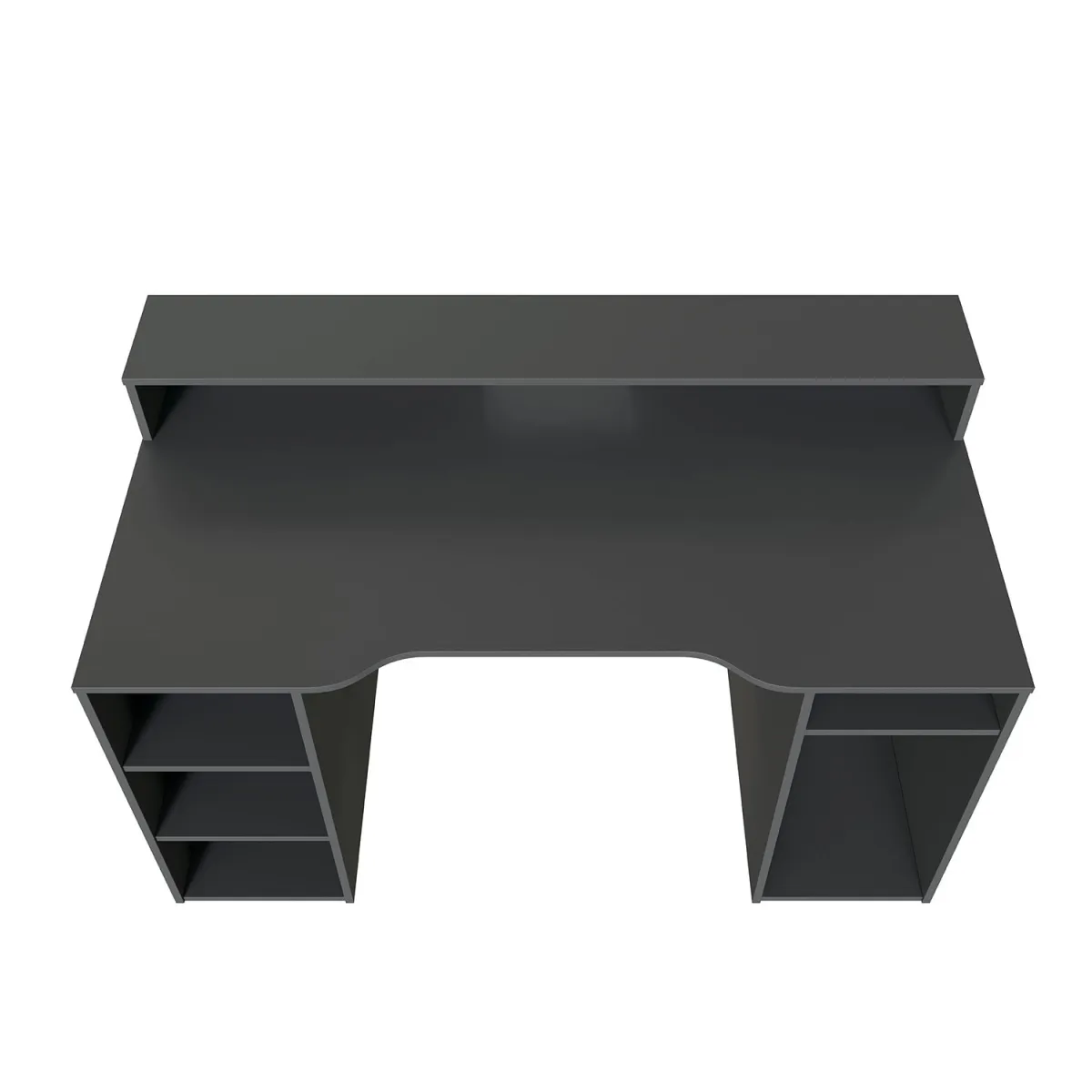 A secretária Seaford com prateleira, com 5 furos, com acabamento em duas versões de cores: tampo lacado preto e laminado na cor Oak e tampo lacado preto e laminado Na cor preta, é perfeito para espaços pequenos e as suas linhas simples, que lembram um estilo nórdico muito acentuado, vão dar ao seu quarto a funcionalidade e o calor típicos destes designs.