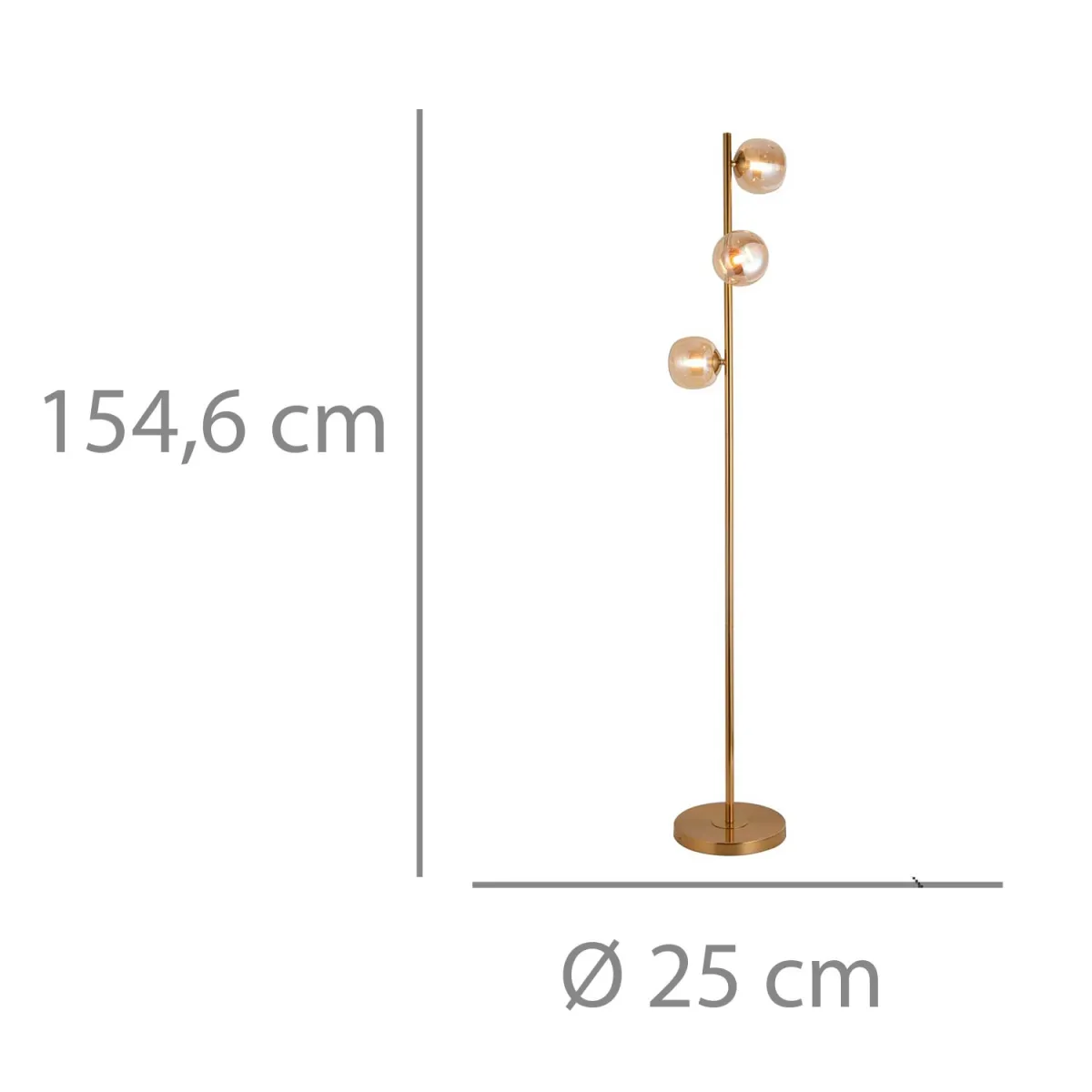 Candeeiro de Pé Eridan 1 Luz color Dorado. candeeiro de pé decorativo que oferece luz ambiente e um toque de estilo ao seu espaço. Apresenta acabamento em cor dourada. Ideal para sala de estar, sala de jantar ou quarto.