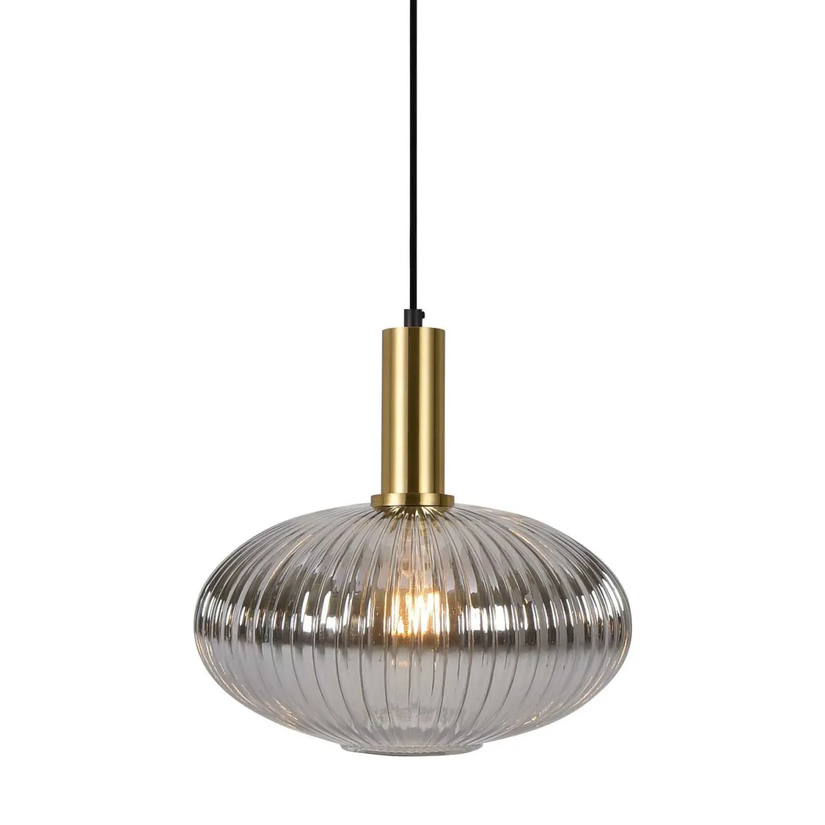 O candeeiro suspenso Vega Fumé de 1 luz é ideal para dar um toque elegante e moderno a qualquer espaço. Com a sua estrutura em aço pintado de dourado e abajur verde, proporciona uma iluminação quente e sofisticada.