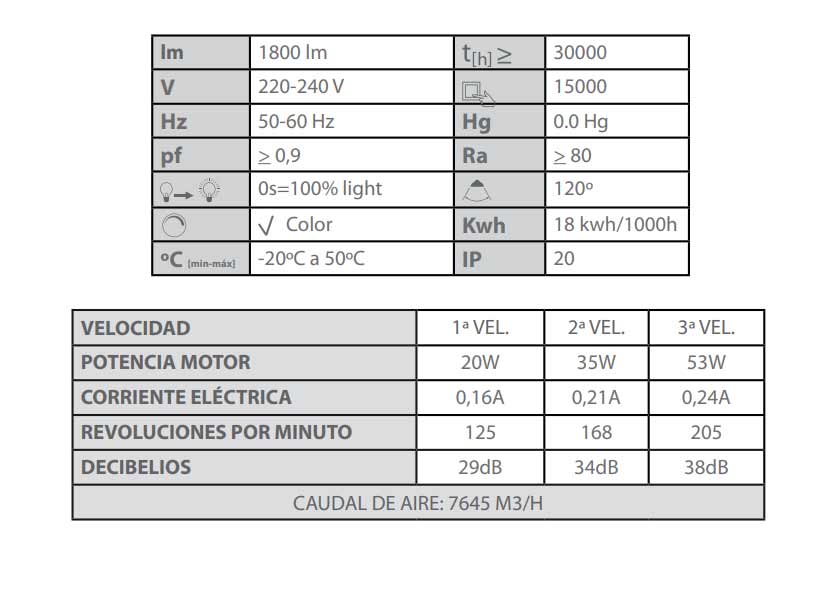 Ventilador de teto com 3 velocidades, corpo em Alumínio com acabamento branco e 4 pás em madeira branca. Inclui 1 casquilho E27 com tulipa de cristal onde pode montar uma lâmpada LED ou incandescente até 40W. O ventilador dispõe de 2 correntes, uma delas para ligar e desligar a luz do ventilador e a outra para alternar entre as 3 velocidades que possui....