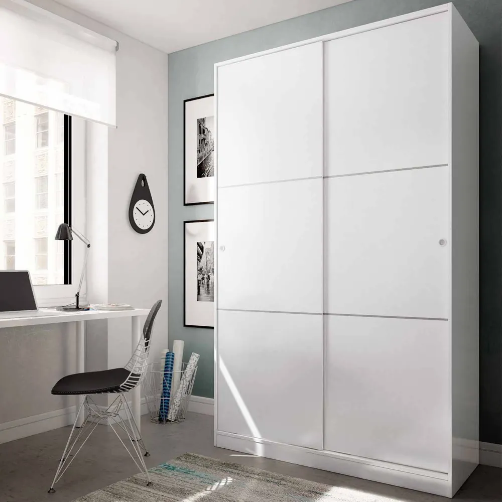 Armário juvenil de 2 portas Noa branco Artik e Carvalho Nodi, que simula o grão encontrado naturalmente na madeira.