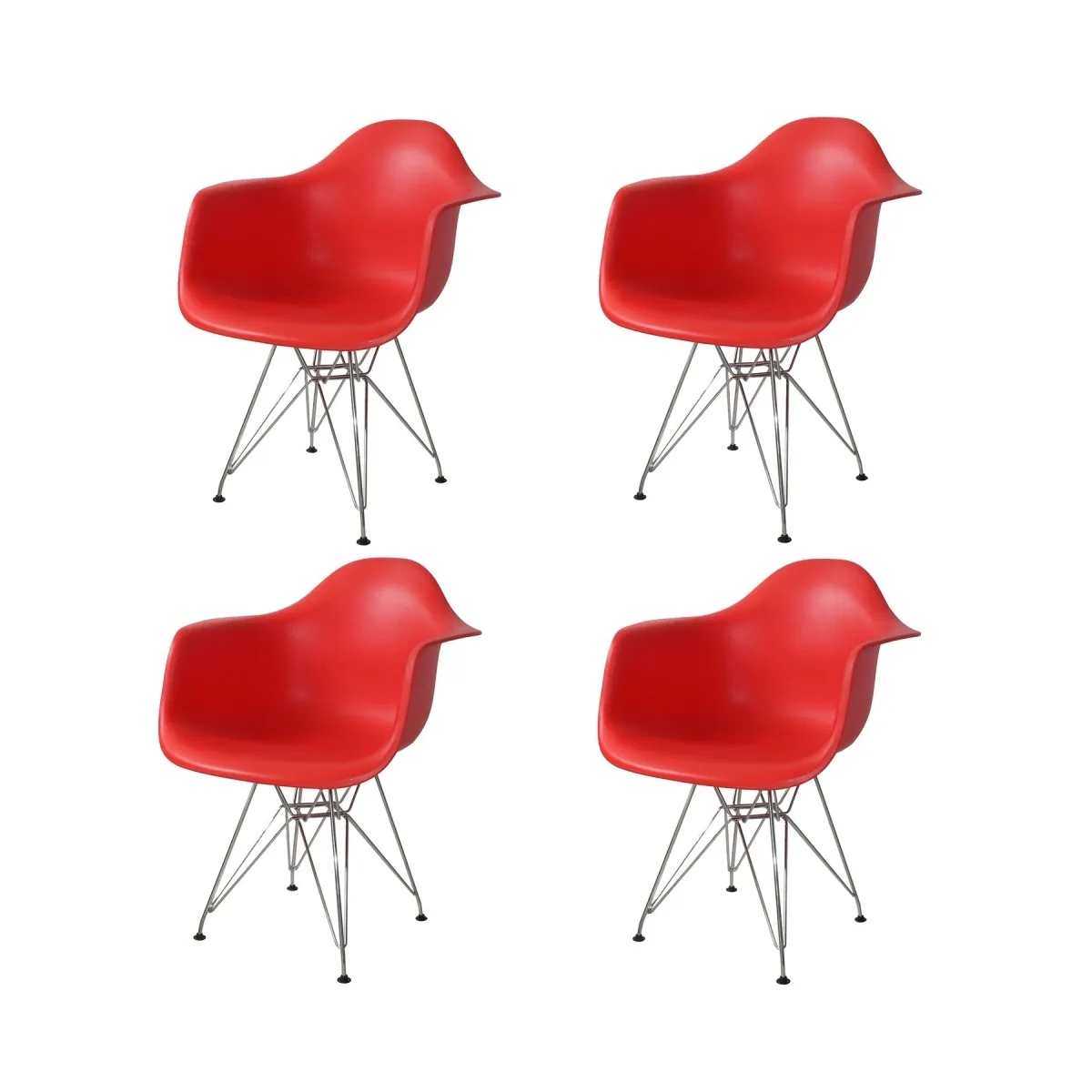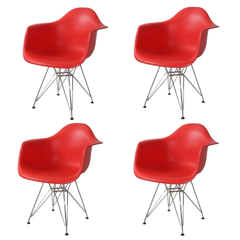 UKUKHOME.com traz-te o Pack de 4 cadeirões Tower Chrome em toda a nossa gama de cores, para que você possa economizar na compra deste design de mobiliário clássico que vem estilizando casas em todo o mundo por mais de 50 anos. A base deste cadeirão é a estrutura formada por um conjunto de hastes metálicas entrelaçadas que imitam a estrutura da Torre Eiffel e que funcionam como pernas. Um assento ergonômico feito de polipropileno fosco é montado nele. O assento possui apoios de braços para maior conforto e relaxamento. O cadeirão Tower Chrome é uma peça versátil que, tanto pelas suas características estéticas como pela sua funcionalidade, pode ser colocada tanto na sala como no quarto. Os materiais em que é fabricada, metal e polipropileno, conferem a esta poltrona grande resistência e durabilidade, o que a torna uma peça perfeita para o uso diário. Medidas: Altura: 80 cm | Profundidade: 61 cm | Largura: 62 cm | Altura do assento: 43,5 cm | Altura do braço: 66 cm