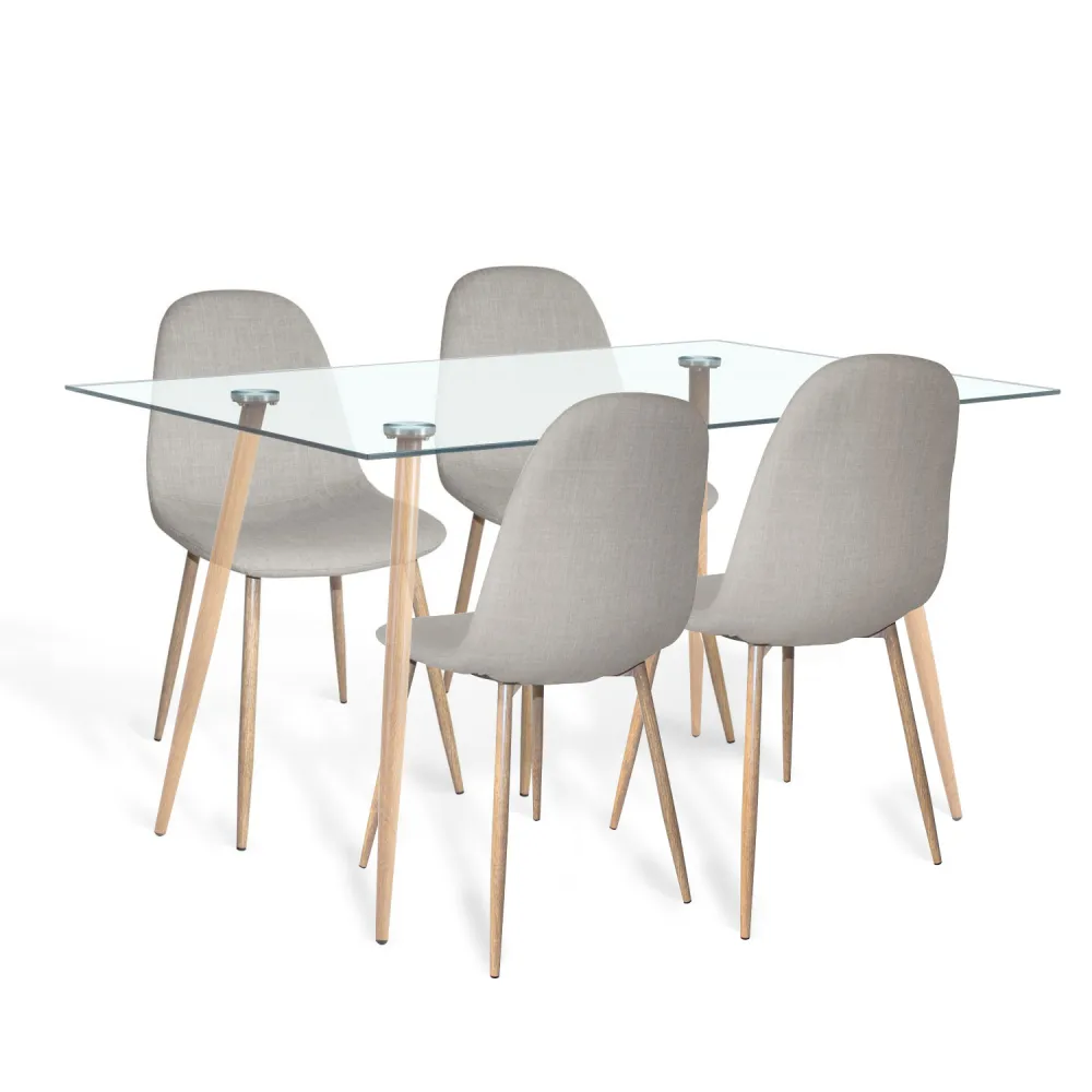 PACK MESA DE JANTAR FOREST 140 CM E 4 CADEIRAS CORO VELVET NATURE CINZA