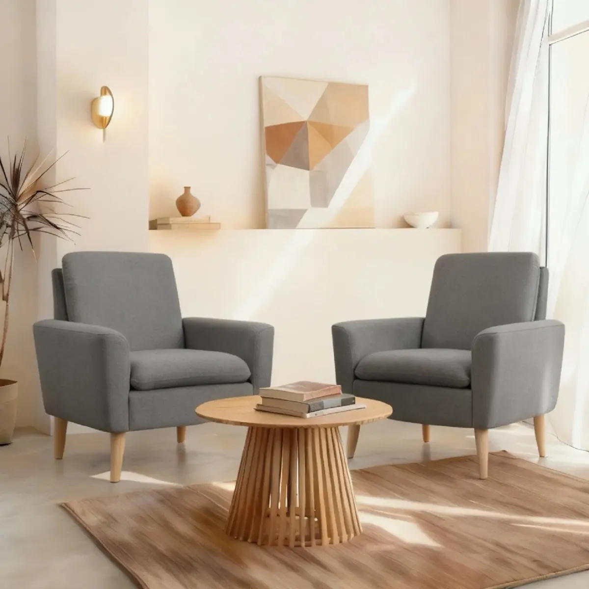 O sofá Viena cinzento combina design contemporâneo e conforto superior. Linhas limpas, acolchoamento generoso e assentos macios, com estrutura robusta e tecido de alta qualidade fácil de manter.