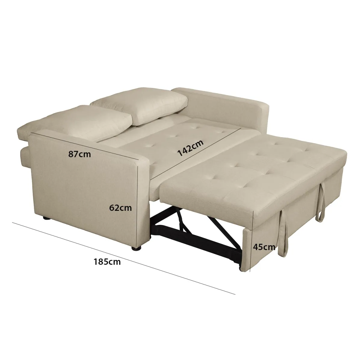 O sofá cama Cube é uma opção versátil e moderna para qualquer casa. Fabricado em tecido com pés pretos, este sofá cama não só adiciona estilo à tua sala de estar, como também oferece o conforto que precisas para um descanso reparador. Ideal para espaços pequenos ou multifuncionais, a sua versatilidade permite o seu uso como sofá e cama em diversos estilos...